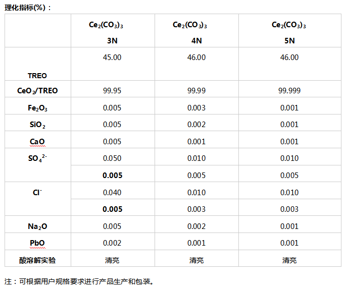 用途:用于制造三元催化剂、铈盐中间体、硬质合金添加剂、陶瓷工业。